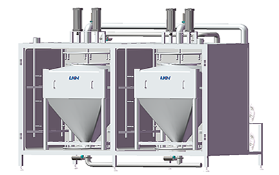優(yōu)康恩自動化料系統(tǒng)用于對粉料和其它配料進(jìn)行乳化和水化的混料系統(tǒng)設(shè)備。其中真空混料機(jī)可在密閉真空容器下進(jìn)行高速剪切乳化混合綜合產(chǎn)品、各種粉末和液體等,每小時(shí)化粉量可達(dá)到3T-5T。優(yōu)康恩自動化料系統(tǒng)可利用真空作用將配料輸送到化料設(shè)備中,省去了操作工承擔(dān)這項(xiàng)繁重工作的需要。